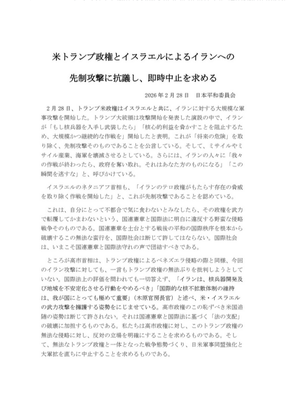 2026年2月28日付けで日本平和委員会が発表した