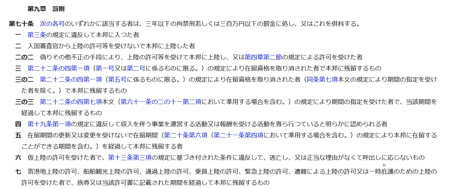 ・資格外活動違反(「出入国管理及び難民認定法」違反)